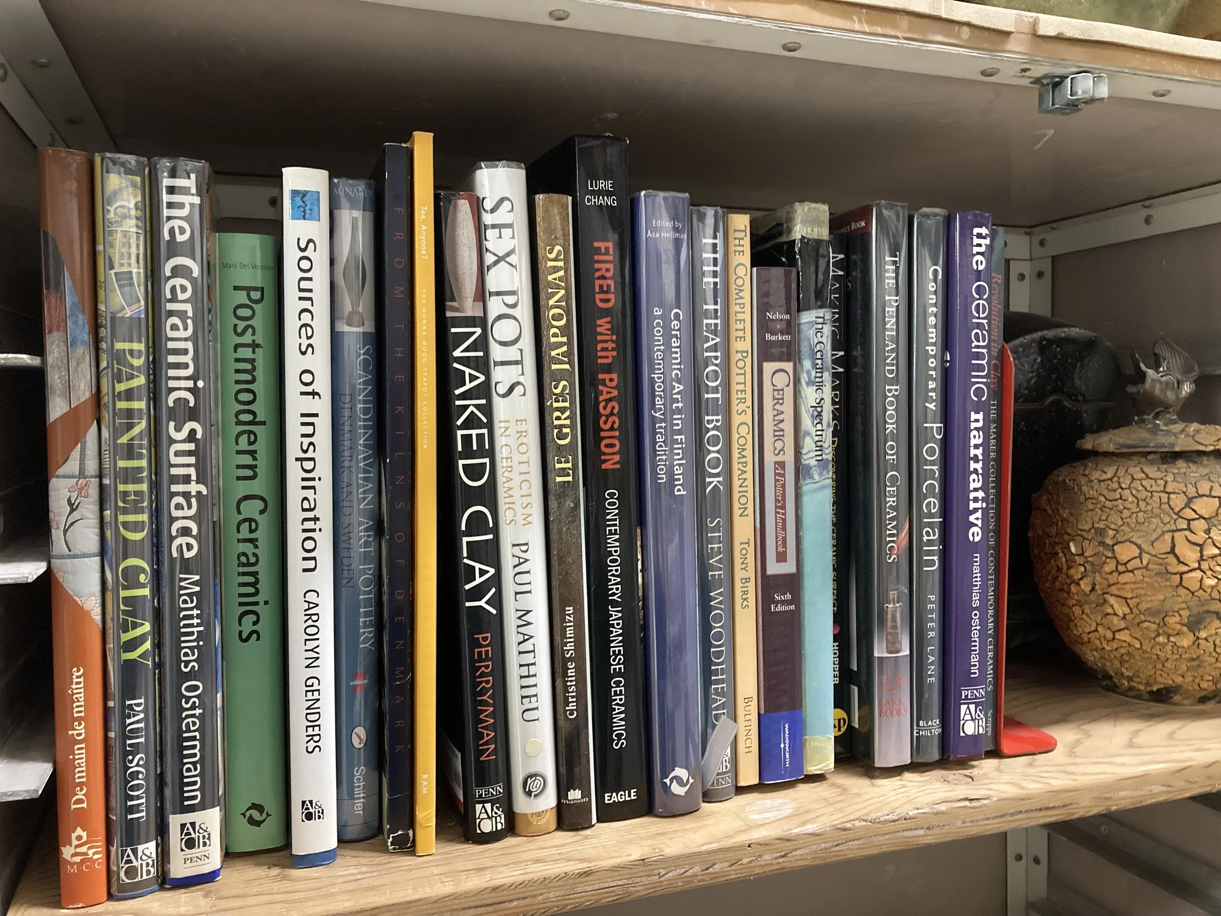 Jacques' personal collection of ceramics books is now a key part of the studio, placed throughout the library. A plaque and biography honor his contributions, inspiring students and visitors.